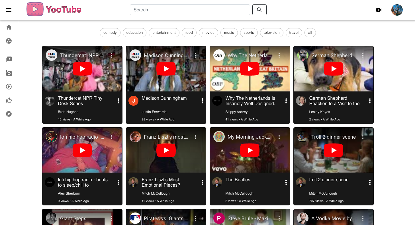 I loved working with my group making this mock YouTube in React. Working through merge conflicts and sharing ideas about NPM packages gave of a strong sense of what we will encounter in a workplace environment.